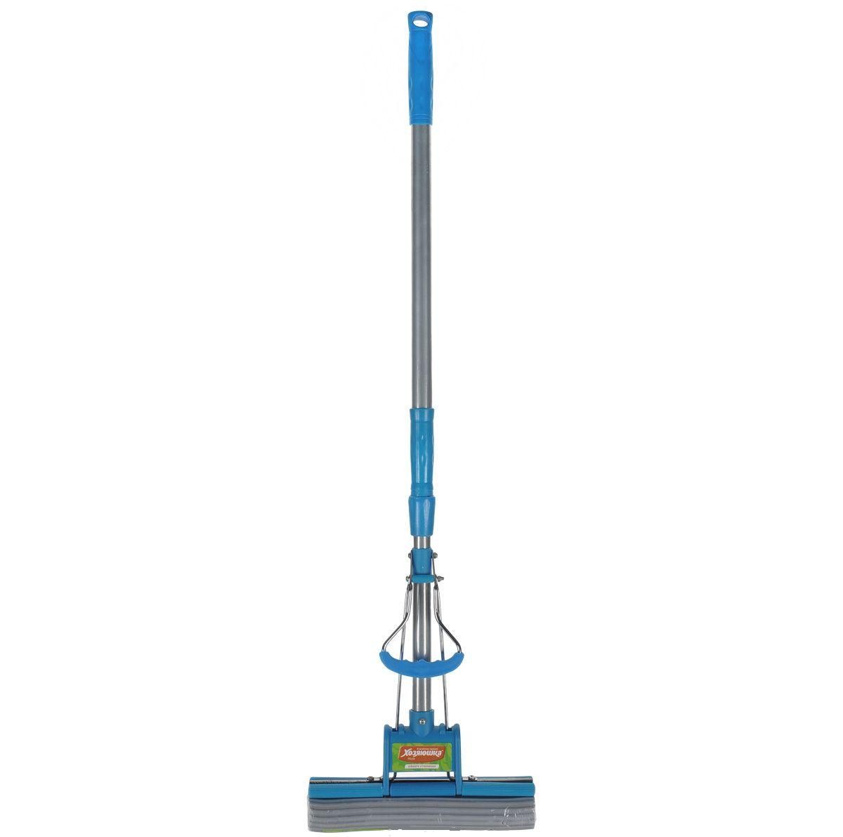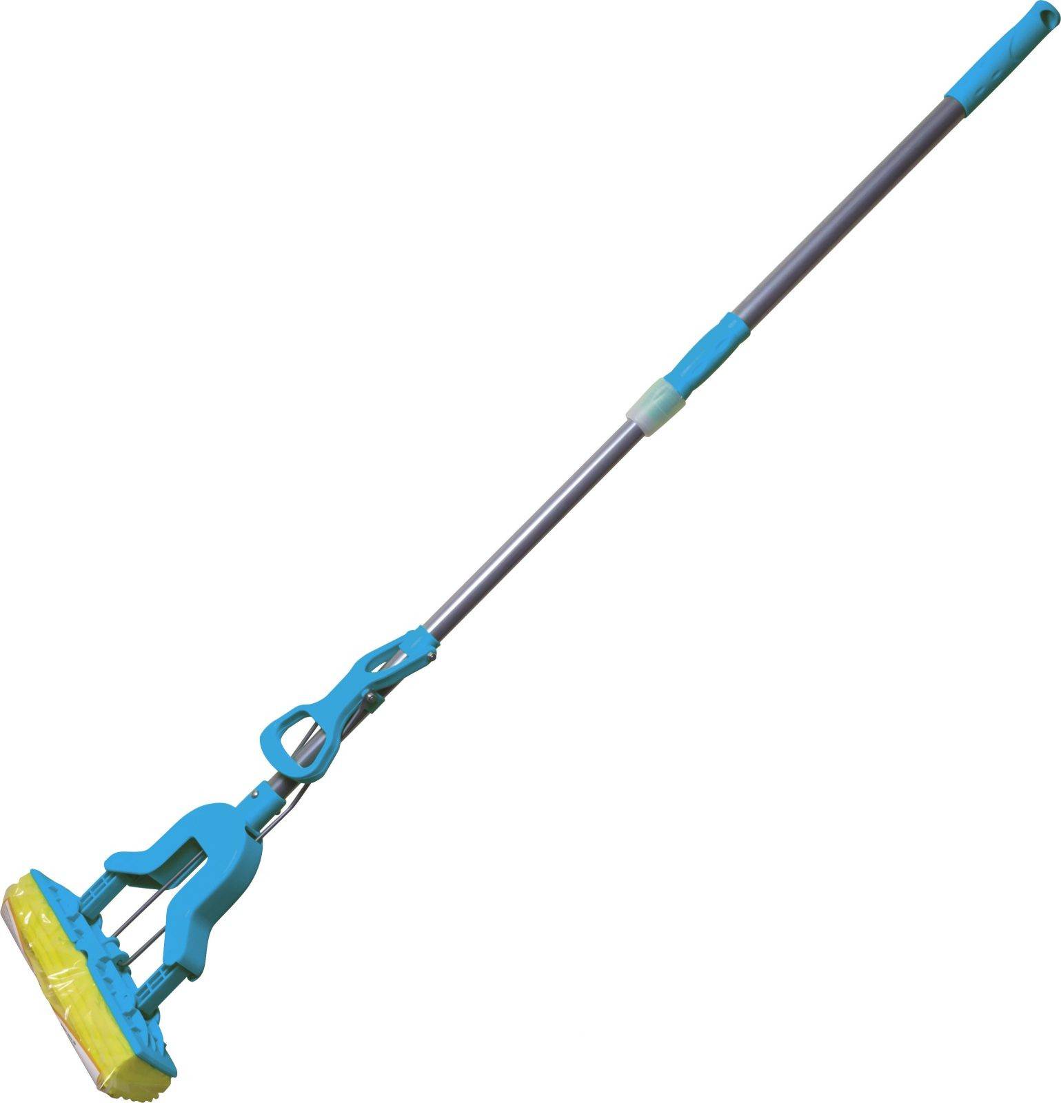 - Швабра-лентяйка (швабра с губкой). Представляет собой достаточно сложную конструкцию с автоматическим отжимом и съемным губчатым валиком на конце. Плюсов у такой швабры много. Во-первых, валики бывают разной длины и ширины. Они продаются в любом хозяйственном магазине по доступной цене и по необходимости их можно с легкостью поменять. Во вторых, автоматический отжим позволяет подобрать влажность губки для мытья поверхностей разного материала. К недостатку можно отнести то, что валик крепится к ручке неподвижно, а это усложняет уборку труднодоступных мест.