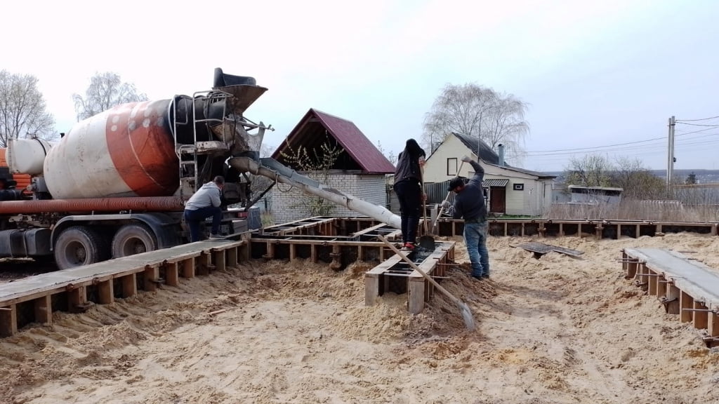 В завершении этой стадии работ производится заливка жидкого бетона, подготовленного любым удобным для вас способом.