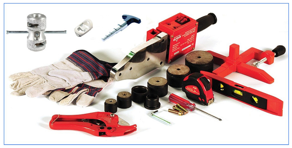 Специальным инструментом для сварки является паяльник или «утюг». Если Вы находитесь на этапе строительства нового дома, то имеет смысл купить себе такой инструмент. Рекомендуется выбирать ручной паяльник в комплект, которого входят насадки покрытые тефлоном. Для домашнего использования достаточно набора с насадками до 40 мм.