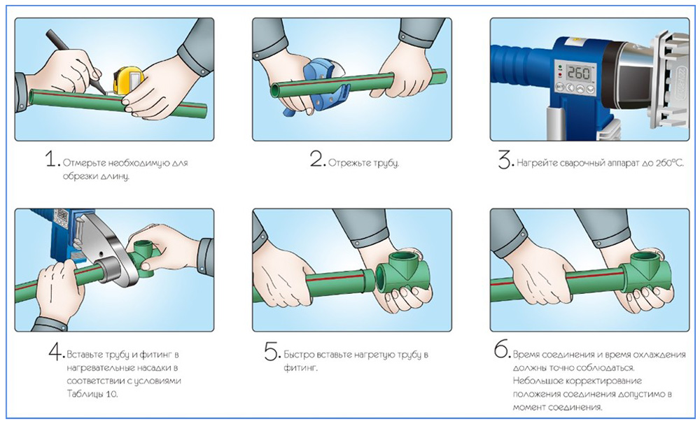 Очень важно при пайке ПП для водопровода или отопления заранее просчитать все этапы монтажа. Выполнить точные измерения, последовательность сварки