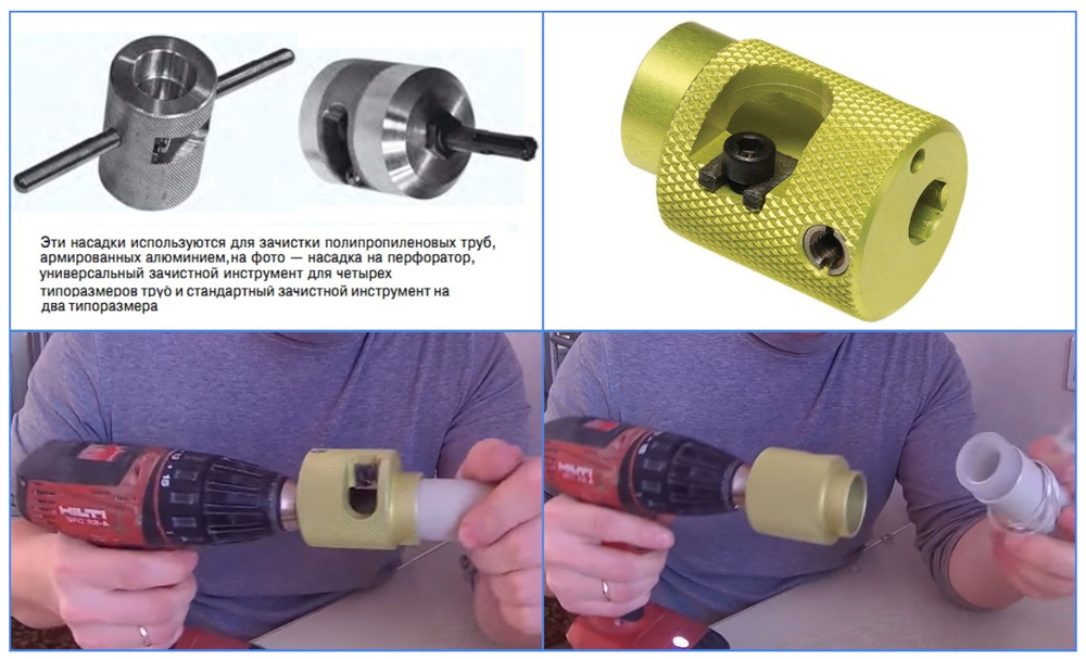 - инструмент для зачистки армированных труб из ПП. Представляет собой специальный резак, а в примитивном виде – прочный нож с удобной рукоятью и коротким лезвием;