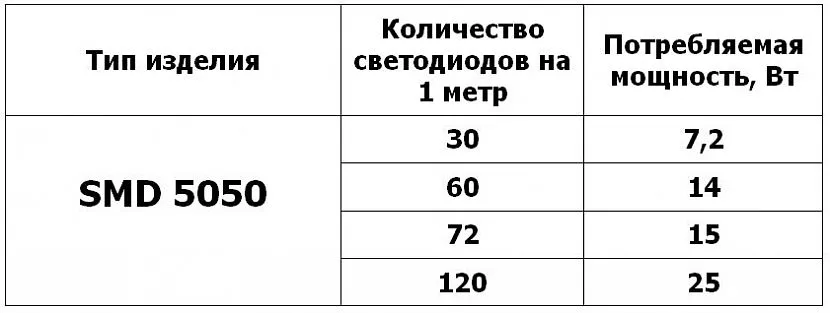Чтобы произвести расчет мощности для конкретной ленты, показатель из крайнего правого столбца нужно умножить на весь метражИсточник electricvdele.ru