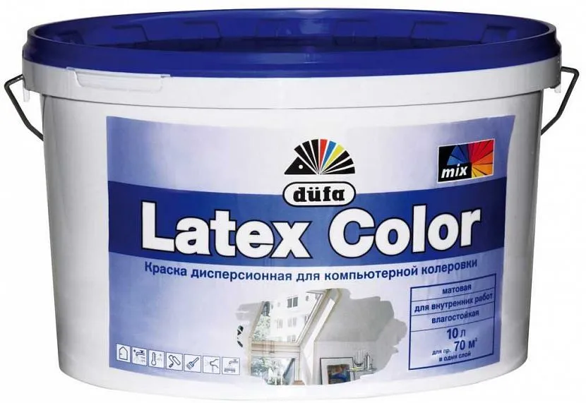 Если вами будет использоваться краска водоэмульсионная, характеристики данного состава необходимо рассмотреть перед нанесением смеси на поверхность. Среди ингредиентов следует выделить: