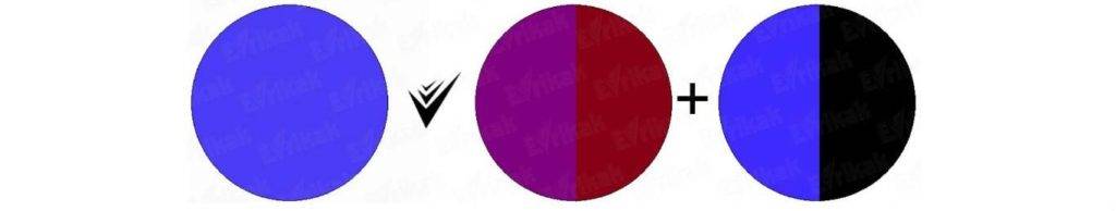 - для пурпурного надо вводить большее количество красной краски, нежели синей.