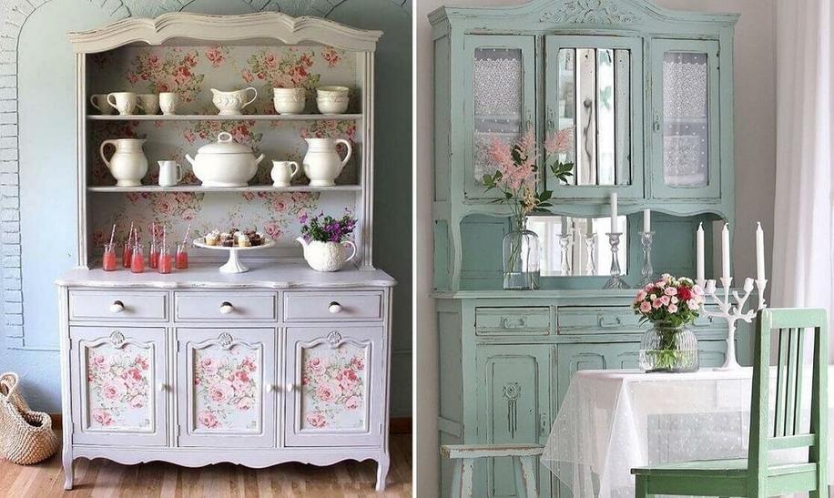 Комоды. Они выдерживаются в разных цветовых решениях, начиная от белых, голубых, и заканчивая розовыми. Комоды могут быть как изящными, так и большими по размерам. Они имеют оригинальные изогнутые ножки, потертые поверхности, и часто запираются на замки.
