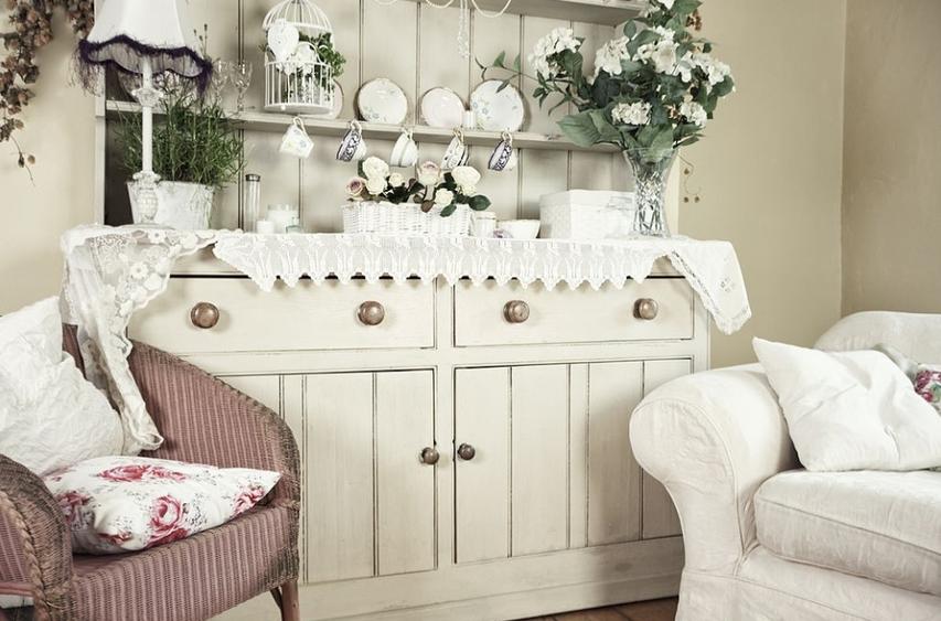 Для того чтобы воссоздать старинную, но в то же время романтичную обстановку, необходимо использовать кружева. Ажурные ткани станут отличным дополнением для нежного интерьера, такие помещения наполняются спокойствием и уютом, который присущ деревенским домам.