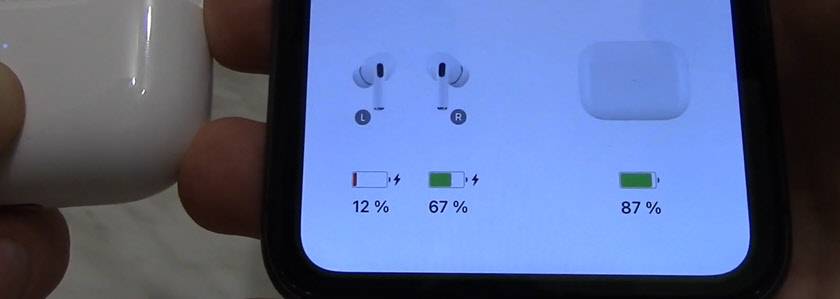 Ситуация, когда один наушник уже полностью разрядился и выключался, а второй, например, показывает еще 30% заряда. По моим наблюдениям, чаще всего правый наушник разряжается быстрее левого. Но иногда бывает, что левый быстрее правого. Например вот так (AirPods Pro):