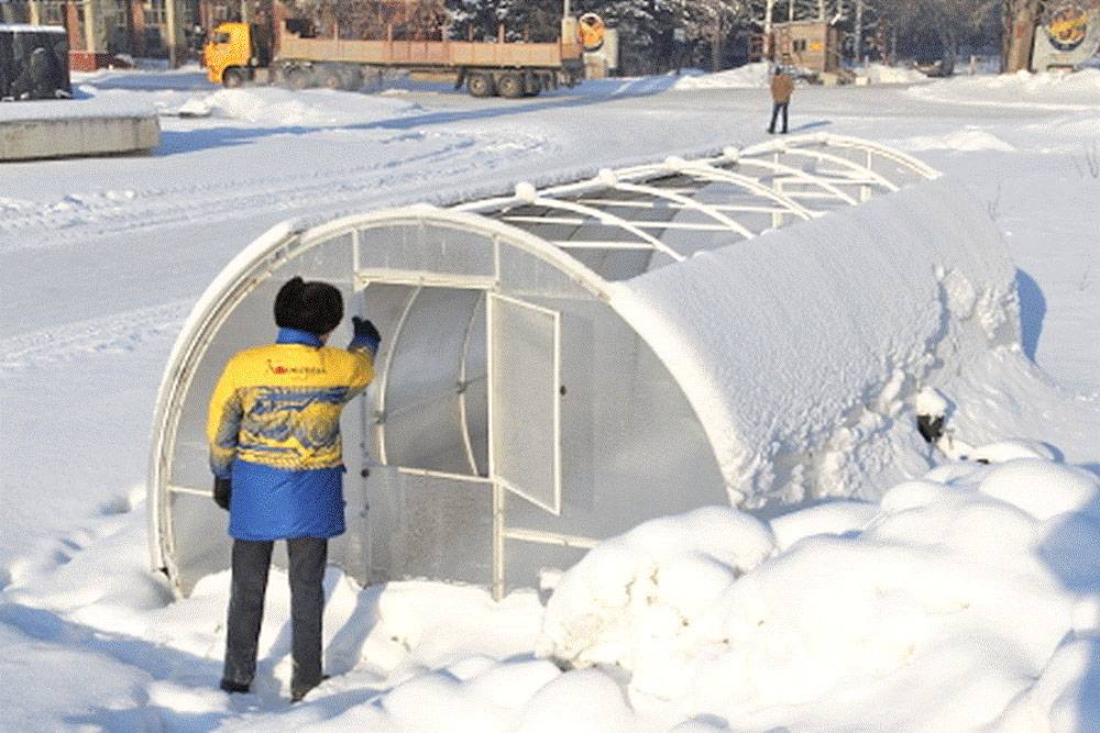 Строение выдерживает снеговую нагрузку до 180 кг/м². Такое значение является нормативным, к примеру, для Московской области, поэтому «Радугу» можно устанавливать в любом регионе умеренного климатического пояса.
