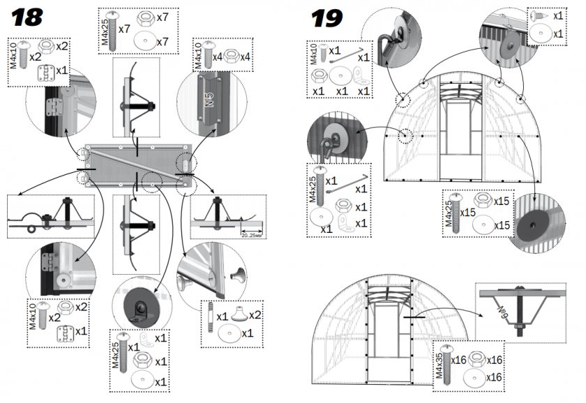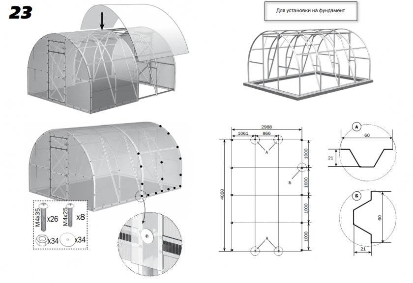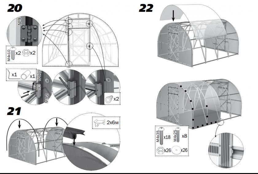 Внимание! Инструкции предназначены для ознакомления. Сборку и эксплуатацию теплицы осуществляйте с инструкцией, находящейся в комплекте каркаса, т.к. в инструкции могут вноситься изменения