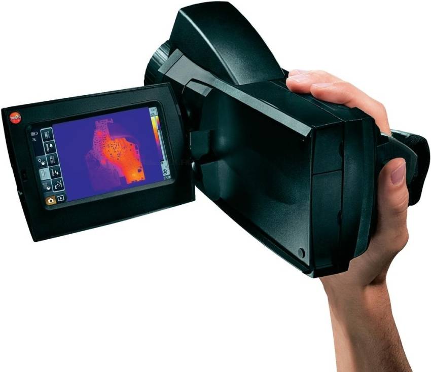 Открывает данную группу модель тепловизора Tеsto 890-2 с разрешением детектора 1280х960р и экрана 480х272р. Для камеры видимого диапазона данный параметр равен 5 Мп. Тепловая чувствительность прибора составляет 0,04 ºС. Тепловизор может работать на протяжении 4,5 часов благодаря быстрозаряжаемому литий-ионному аккумулятору. Прибор способен увеличивать снимки в 3 раза, что не влияет на качество изображения.