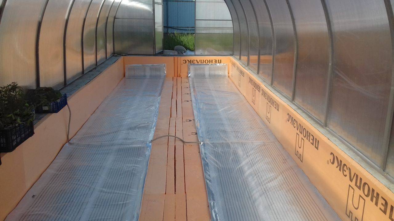 Пленка для обогрева теплицы размещается по периметру, полосами в 1 метр. Пленка размещается в грядках, по краям каждой грядки и по середине, ширина полосы 50 см, 30 из которых под землёй. Кроме этого полоса пленки шириной 0,5 м, укладывается в бетонную дорожку посредине.
