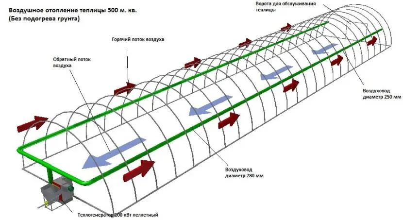 Совет! Отсутствие труб с нагретой водой – это немалая экономия при монтаже. Но отапливать такую теплицу придется непрерывно.