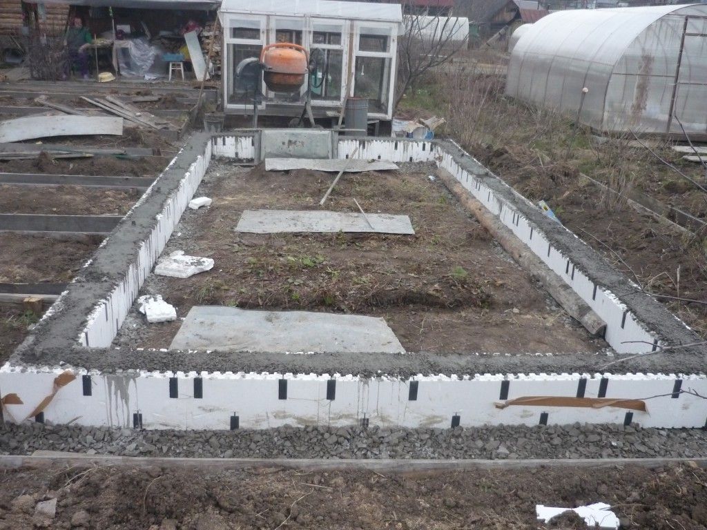 Пласт почвы глубиной до 40 см снимают штыковой лопатой. Дно выравнивают, засыпают пятисантиметровым слоем песка и утрамбовывают. Сверху на песок выкладывают теплоизоляционную прослойку в виде пенополистирола. На прослойку вновь засыпают слой песка, аналогичный по высоте