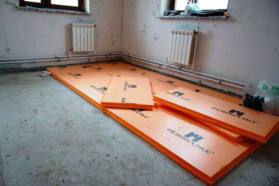 Поверх укладывают слой теплоизолятора. Оптимальный вариант — пеноплекс высокой плотности, способные принимать нагрузку от веса людей и мебели.