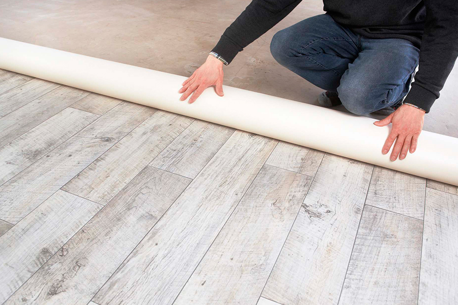 Так как такие покрытия поставляются рулонами, их предварительно расстилают на несколько дней в большом помещении. Но в нашем случае имеется преимущество – линолеум можно расселить по ДВП и включить систему теплого пола, чтобы материал нагрелся. От излучаемого тепла выравнивание произойдет значительно быстрее. При этом терморегулятор должен быть выставлен на режим прогрева до 28 градусов, так как именно эта температура для линолеума считается оптимальной.