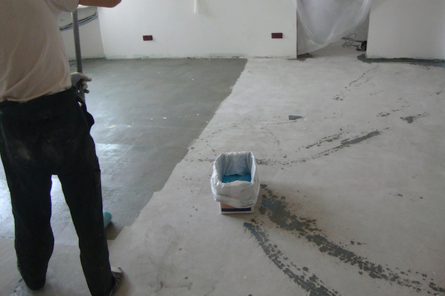 Выполняется очистка чернового пола, удаление старого напольного покрытия. При необходимости можно выровнять поверхность, хотя стяжка обеспечит наличие ровной плоскости и без этого. После этого поверхность гидроизолируют (если имеется бетонное перекрытие, наносят слой грунтовки глубокого проникновения и укладывают сплошное герметичное полотно изоляции).