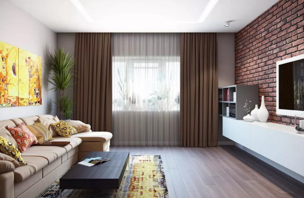 - Сочетаемость. Современные идеи оформления приветствуют комбинирование разных видов отделки. Популярное решение для любого интерьера – акцентная стена. Для неё обычно приобретают более выразительный материал; для остальных стен выбирают бюджетную отделку. Главным в таком решении будет сочетаемость цветов и/или фактур акцентной и остальных стен.