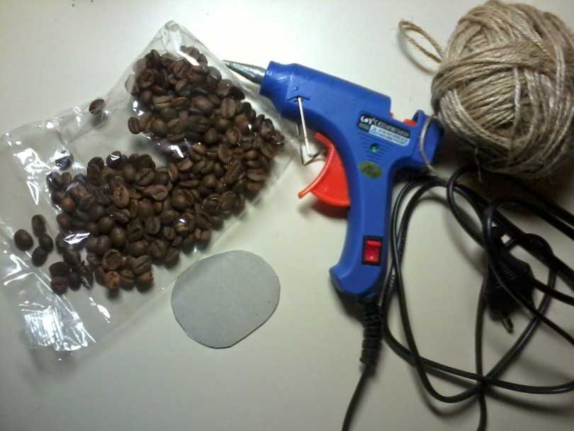Приклеивание кофейных зерен