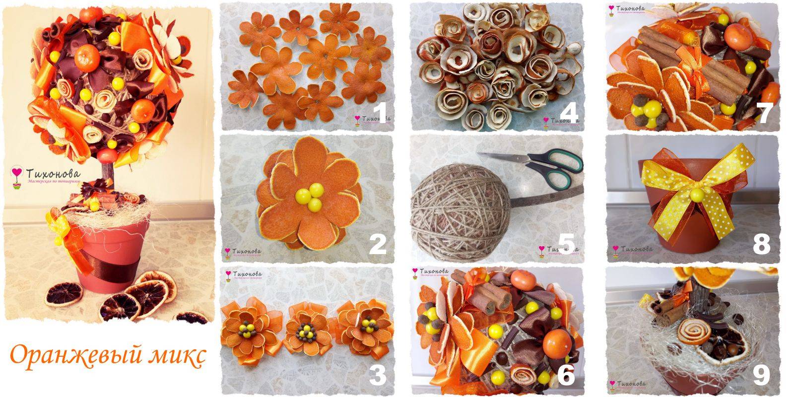 Подробный мастер-класс — природное дерево «Оранжевый микс» с фото и видео: https://topiarii-mk.ru/topiarii-iz-iskusstvennyih-tsvetov/.