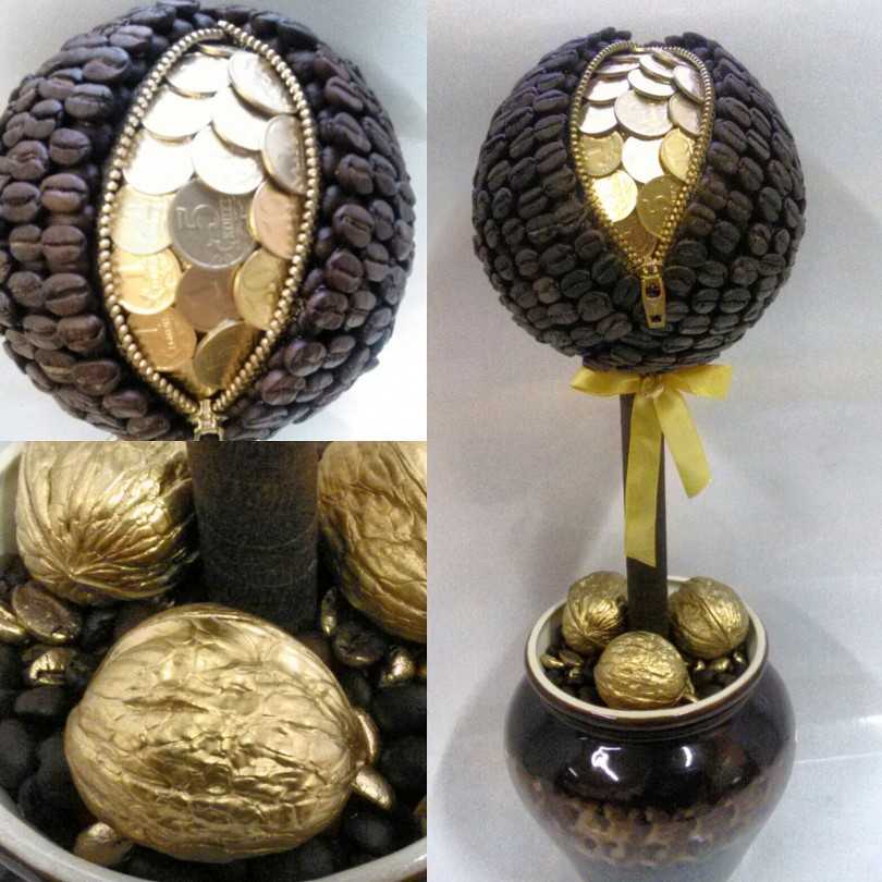 Подробный мастер-класс — дерево «Кофейные мечты» с фото и видео: https://topiarii-mk.ru/topiarii-iz-cofeinyh-zeren/.