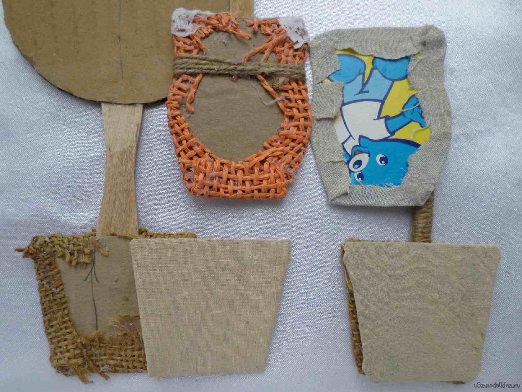соедините при помощи палочки от мороженого заготовки из гофрированного картона;