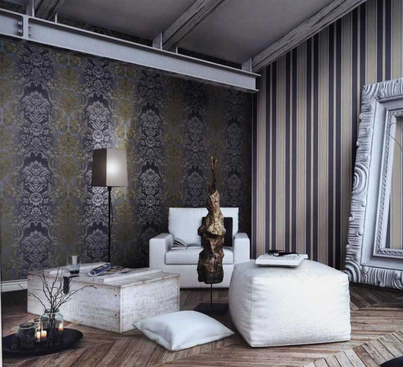 - Учитывают размер помещения. Горизонтальные полосы плохо смотрятся с низким потолком, крупные изображения уменьшают пространство маленькой комнаты.