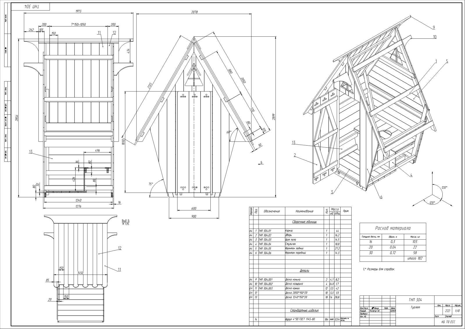 Строительство туалета для дачи: чертеж с размерами для конструкции типа «Скворечник»