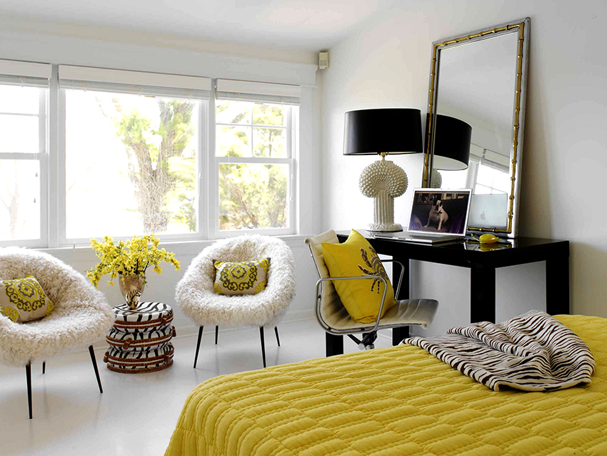 Достаточное пространство большой спальни, также, позволяет разместить разнообразные стульчики, пуфы и подставки для ног. Можно забыть о тревогах по поводу габаритов мебели. Если вы найдете потрясающее дизайнерское кресло, то не стоит себе отказывать в его покупке.