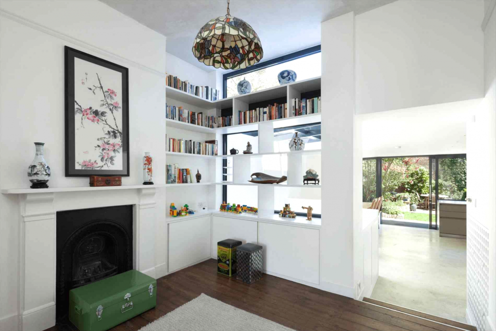 - книжные шкафы в стенке в гостиную появляются, когда зал объединяется с рабочим кабинетом или библиотекой. Предпочтительнее секции в виде стеллажа с тем, чтобы рядом с глухим платяным шкафом или шкафом-купе его структурировали стенку и не превращали ее в монолит;