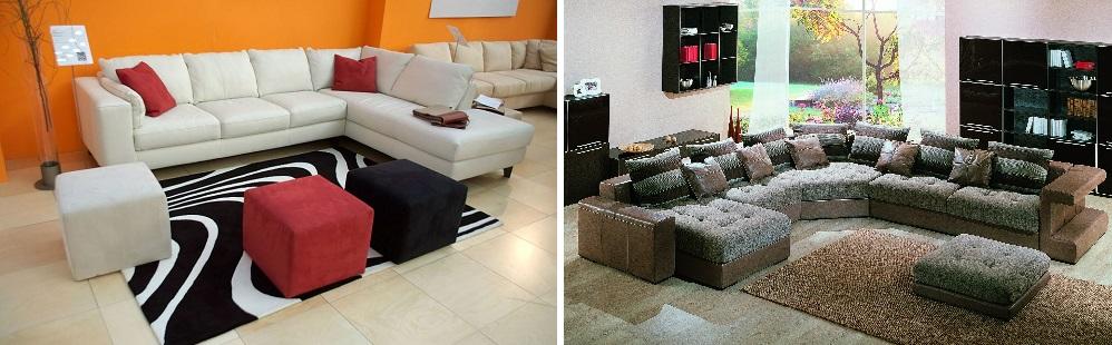 Мягкие угловые комплекты, как правило, состоят из угловых диванов, кресел и пуфиков, которые можно с легкостью комбинировать между собой