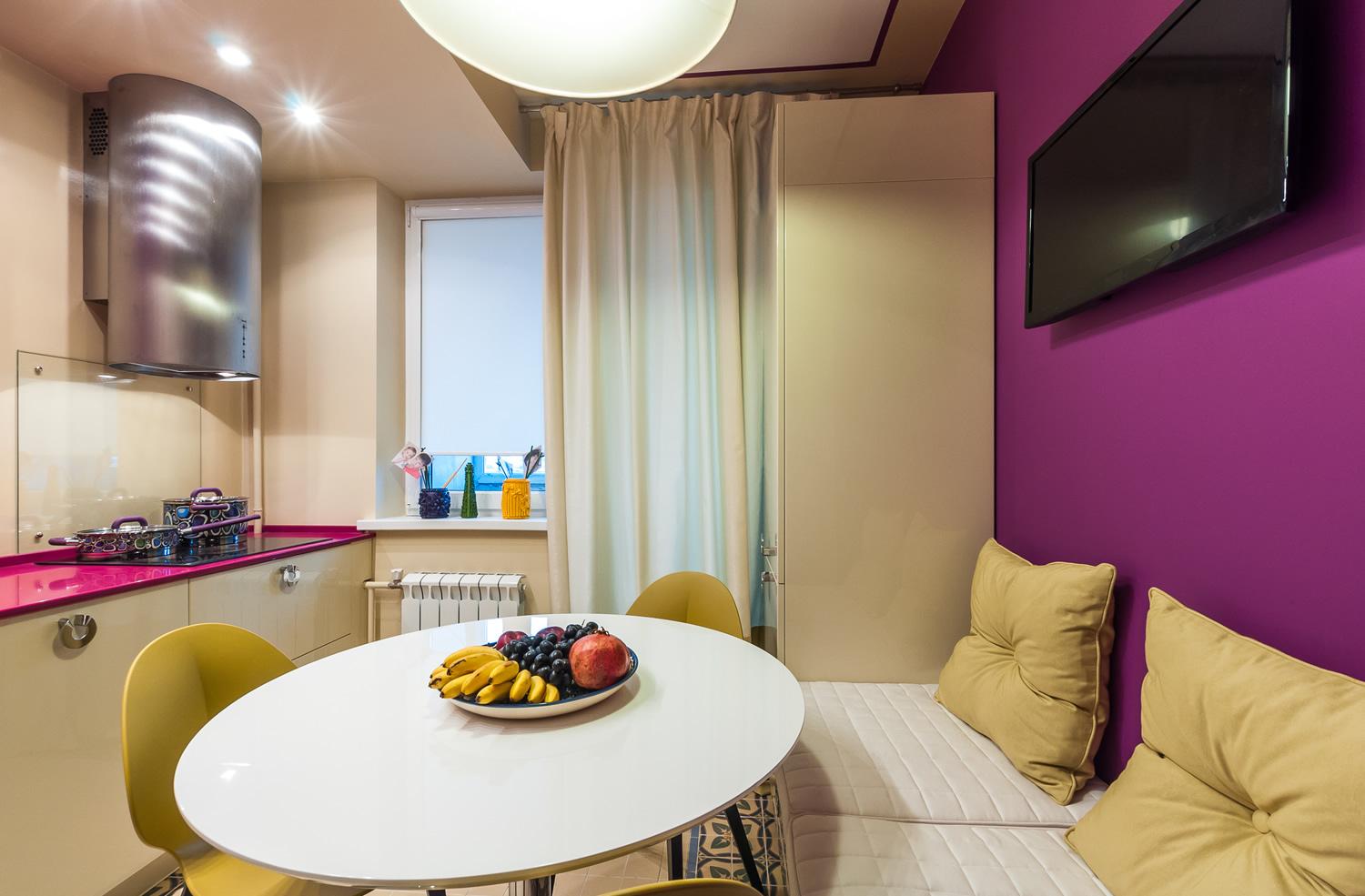 На кухне маленьких размеров при наличии всех основных элементов интерьера диван попросту не представляется возможным разложить до нормального спального места.
