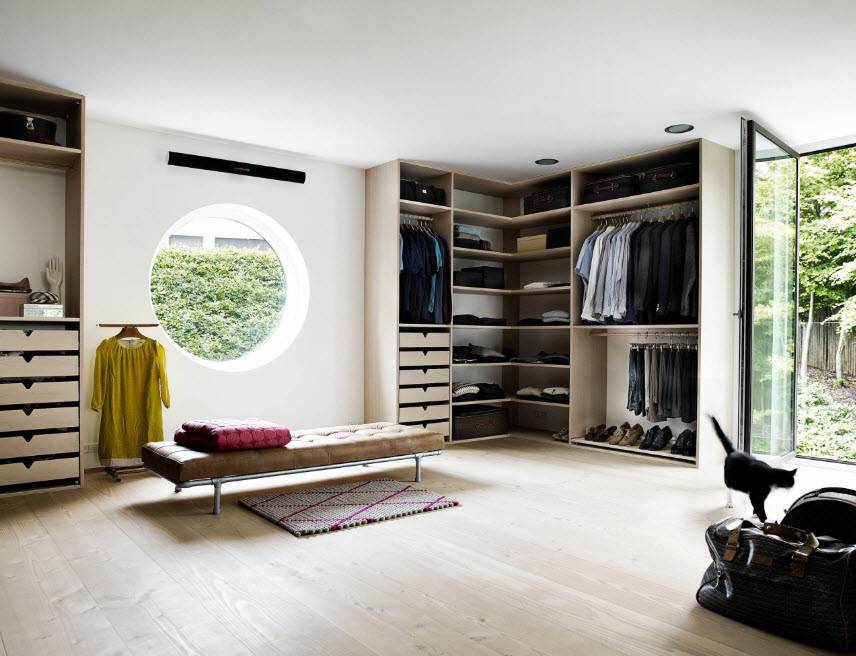 - Удобно переодеваться, так как гардеробную можно оборудовать хорошим освещением и зеркалами в полный рост, и все вещи находятся в одном месте.