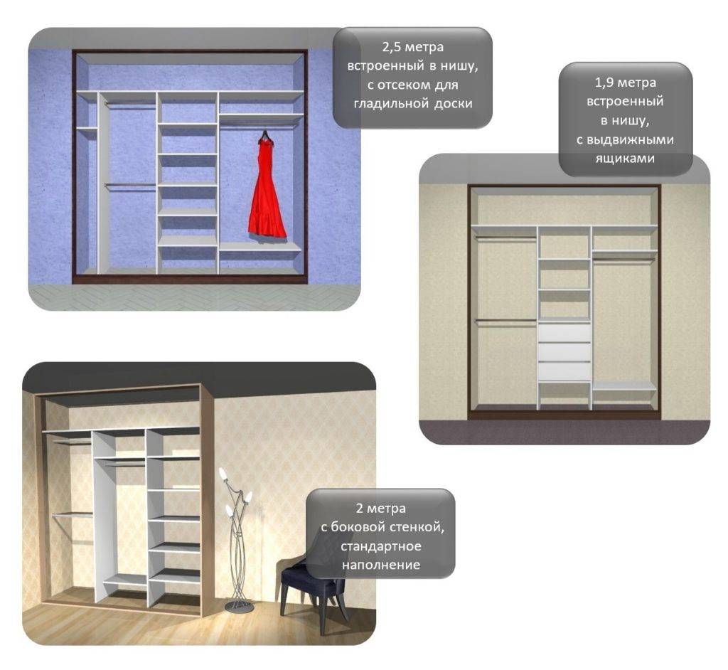 Как лучше распланировать шкаф-купе зависит от места его размещения. Его конструкция может быть: