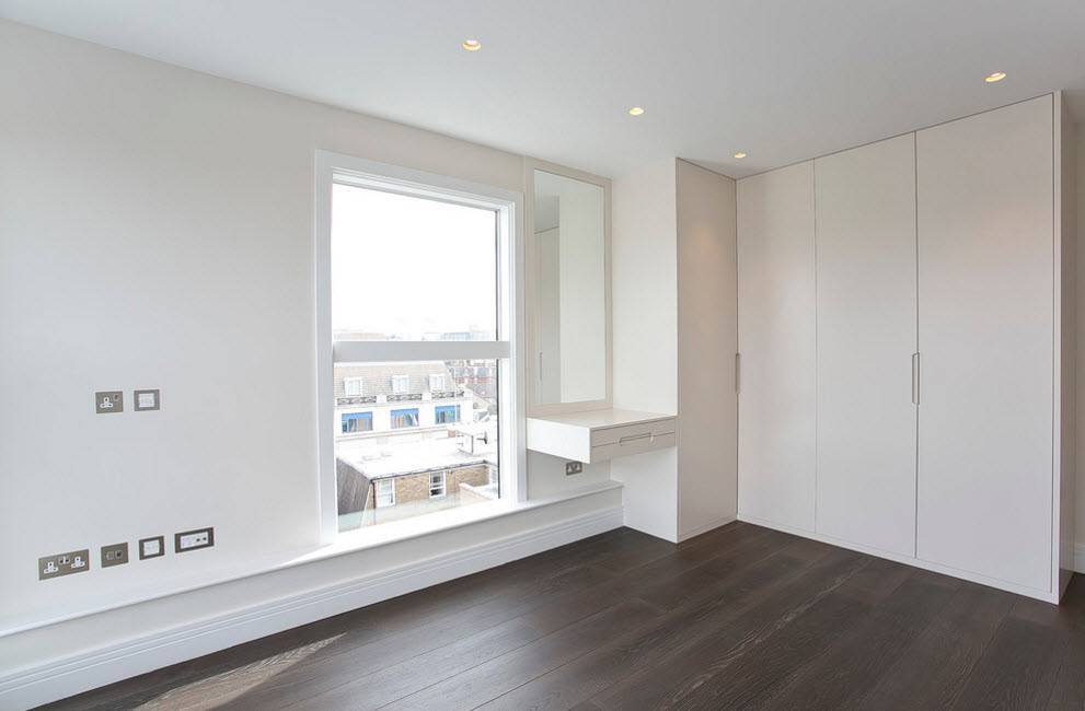 Если комната с нишей, её можно оборудовать встроенным шкафом. Обычно это полки и прочие элементы наполнения, которые крепятся непосредственно к стенам ниши, а вся конструкция закрывается готовыми фасадами.