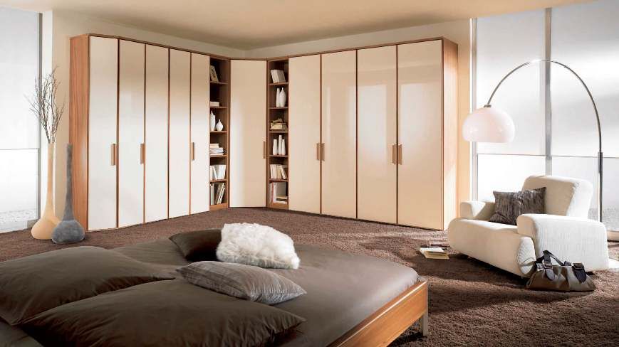 Рациональная планировка. Шкаф этого типа займет пустой угол и визуально сгладит его, благодаря чему помещение будет смотреться гармоничнее.