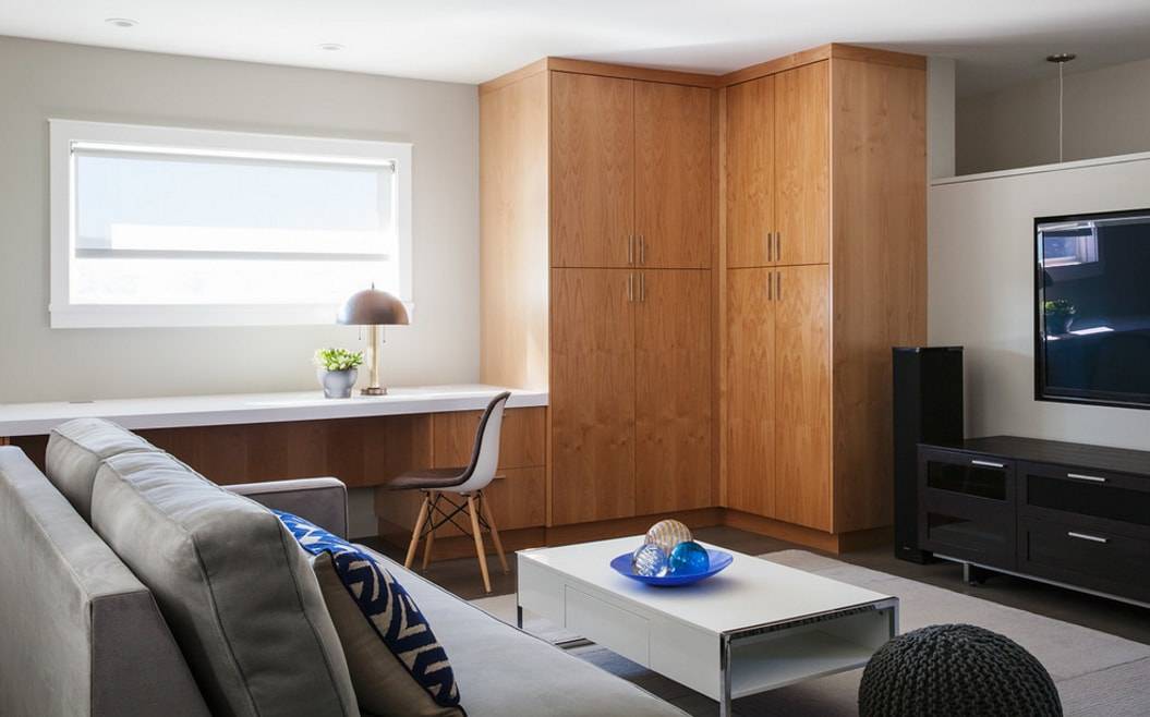 Если в помещении есть свободный угол даже с маленьким радиусом, лучше всего поставить туда угловой шкаф-купе. Несмотря на компактность, такие модели вместительны и высокофункциональны.