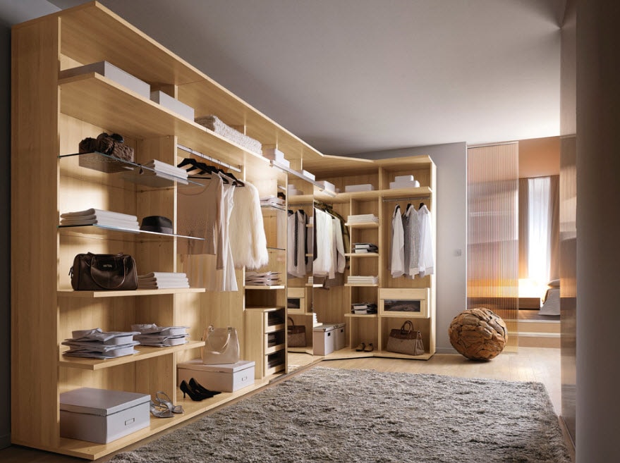 Встроенная гардеробная – это самый практичный, удобный и современный способ хранения вещей.Единственное условие для её обустройства – наличие большого пространства, которое можно отгородить дверьми и дополнительными стенами-перегородками при необходимости.