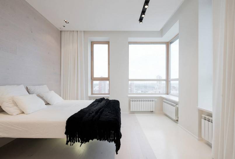 В данном стиле оформление оконного проема несет особый смысл. Аскетичность и сдержанность в выборе декора и аксессуаров может принести ущерб уюту. Правильные шторы призваны исправить ситуацию. Занавески в черно-белом, молочном, бежевом цвете отлично впишутся в минимализм интерьера. Конечно, тяжелые портьеры с подкладом или гардины из капрона совсем будут не к месту, а вот римские и рулонные прекрасно дополнят и подчеркнут стиль помещения.