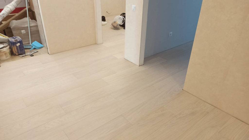 И тогда возникают такие вопросы, касаемые напольного покрытия. При условии, что застилаем всю квартиру одним материалом.
