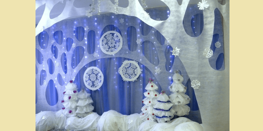 Такое украшение зала на 8 Марта в детском саду своими руками делается не очень быстро. Поэтому если собираетесь соорудить что-то похожее, лучше начинать тренироваться уже сейчас.