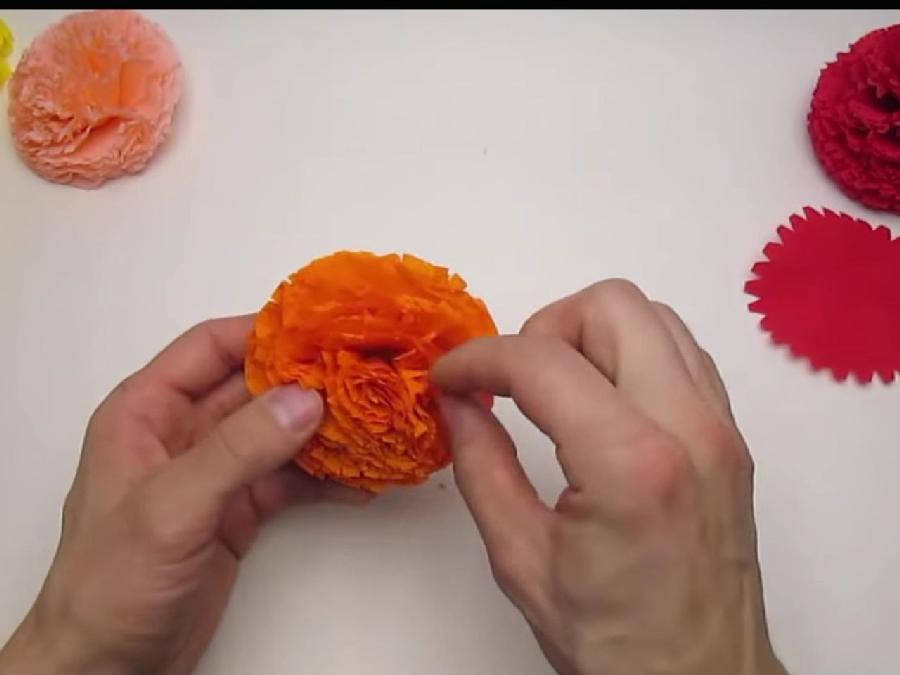 - Расправьте лепестки к центру, и миниатюрный пушистый помпон готов.