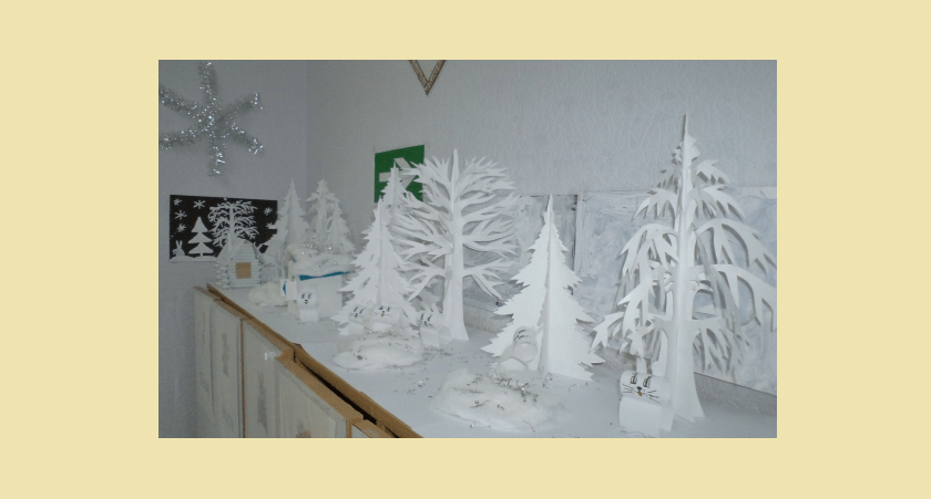 Кроме фигурной обрезки, специалисты области дизайнерского мастерства советуют по краям делать дополнительную декоративную отделку. Это выполняется в виде дополнительного напыления золотистой или серебряной краски, наклейки небольших звездочек и что-то в этом роде.