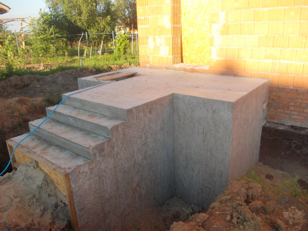 Лестница в подвал делается по тому же самому принципу, что и на второй этаж, но изготовление ее немного проще – делая ступени в подвал своими руками, можно опалубку устраивать непосредственно на земле. Перед этим ее поверхности рекомендуется тщательно утрамбовать и засыпать песком. Если есть время, то рекомендуется делать эти работы осенью, а бетон заливать уже весной