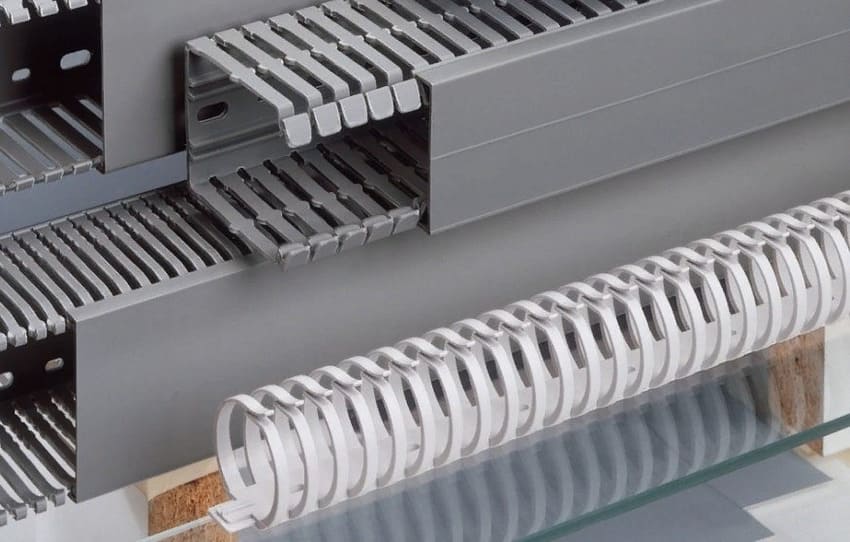 Перфорированные кабель-каналы изготавливаются из разных материалов. Пластиковые легче, не нужно окрашивать, могут быть жесткими и гибкими. На самоклеящиеся крепить уличную гирлянду на дом не стоит, так как под воздействием влаги и перепадов температур клейкое вещество со временем разрушается. Металлические короба дольше служат и не деформируются при нагревании или под нагрузкой. Но во время монтажа и снятия гирлянд защитное покрытие может повредиться, поэтому его периодически нужно обновлять.