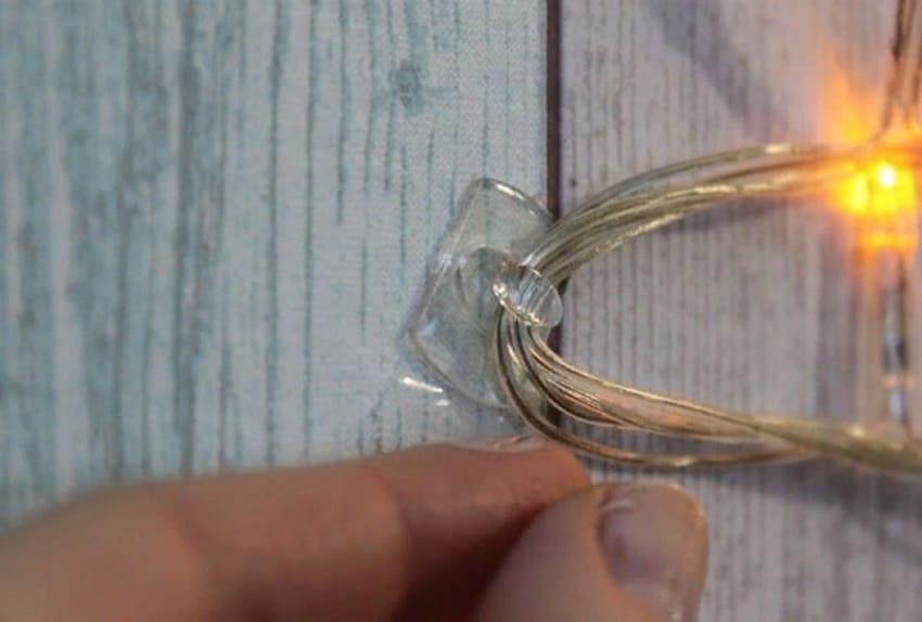 Самоклеящиеся крючки и прочие фиксаторы допустимо использовать. Монтаж легкий и быстрый. Но актуально это в стабильных безветренных условиях без осадков. Для надежности многие усиливают имеющуюся клеевую прослойку морозостойким клеем типа “момента”. Но после демонтажа иллюминации на основании после такого фиксатора останутся следы, что со временем будут только темнеть и выделяться.