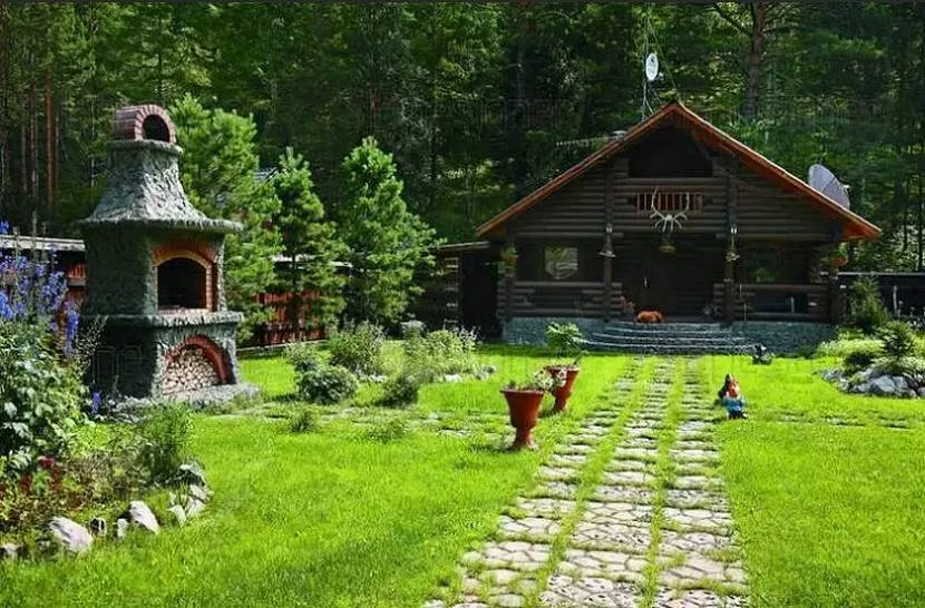 Вся территория делится на условные зоны. Первой идет парадная, поскольку она на самом виду. В нее входит лужайка или палисадник. А также дорожка к дому. Ее разрешается выложить плиткой. Но специальной, с углублениями, через которые прорастет трава. Это создаст эффект нехоженых тропок.