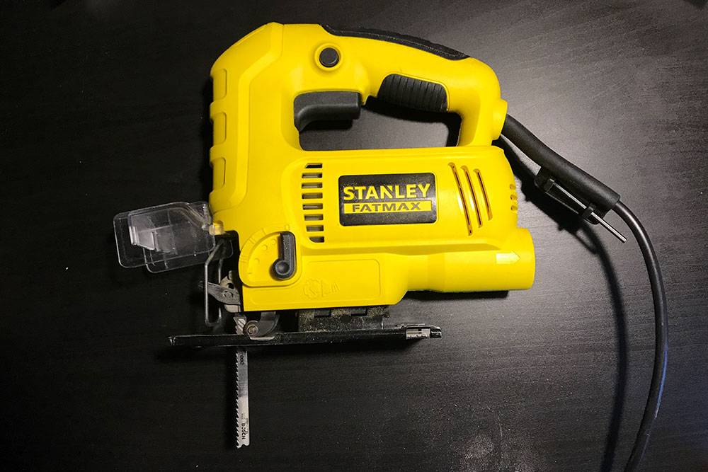 Электрический лобзик тоже был незаменим. У меня Stanley Fatmax FMES550 мощностью 550 Вт — я покупал его раньше, но не специально для кухни. Без него невозможно подрезать шкафы под нужный размер, вырезать отверстия для вытяжки, варочной панели и мойки. Им же я разрезал столешницу — ее привезли кусками больше чем нужно.