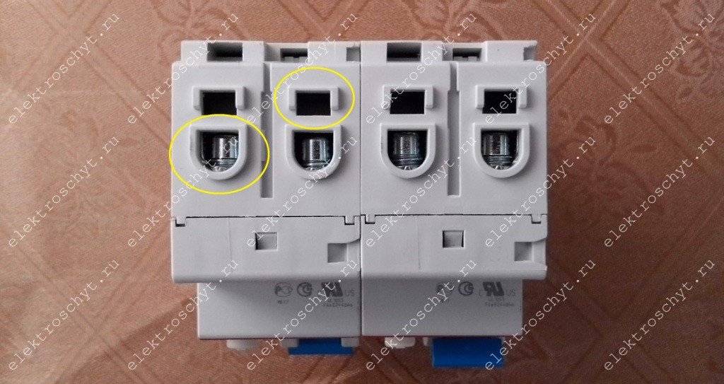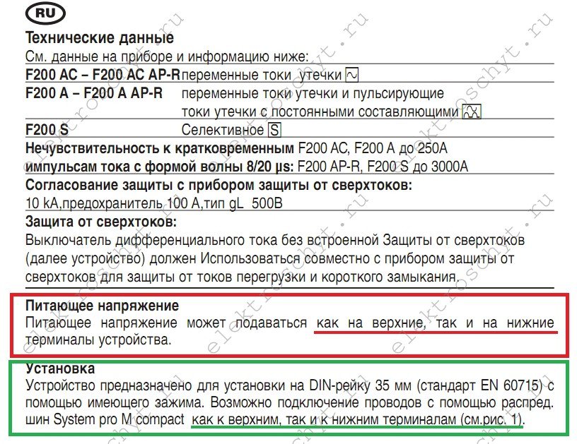 Питание (электричество) можно подавать, как на нижние, так и на верхние контакты УЗО – это утверждение относится ко всем ведущим производителям электромеханических УЗО.