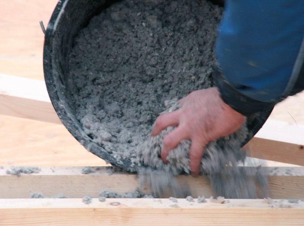 Необходимое количество материала засыпается в специально подготовленную емкость. В строительных магазинах эковата представлена в спрессованном состоянии, поэтому, прежде чем приступить к работе, необходимо взбить полуфабрикат. Делается это с помощью электродрели со специальной насадкой. В процессе этого мероприятия объем материала увеличивается более чем в три раза. Этот факт необходимо учитывать при выборе емкости. Следующим этапом является засыпка распушенной ваты в перекрытия пола, потолка или вертикально ориентированные конструкции