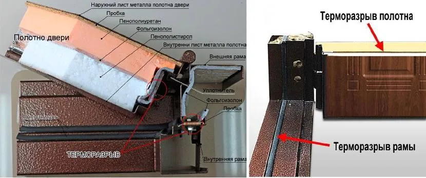 Это важно! При заказе нестандартной двери терморазрывом должны оснащаться все элементы заполнения проема – полка, стационарная створка, фрамуга и т.д. Часто в качестве главного преимущества своей продукции производители заявляют многослойность утепления, использование комбинации из нескольких материалов: минеральной ваты, пенополистирола, фольгоизолона, пробки